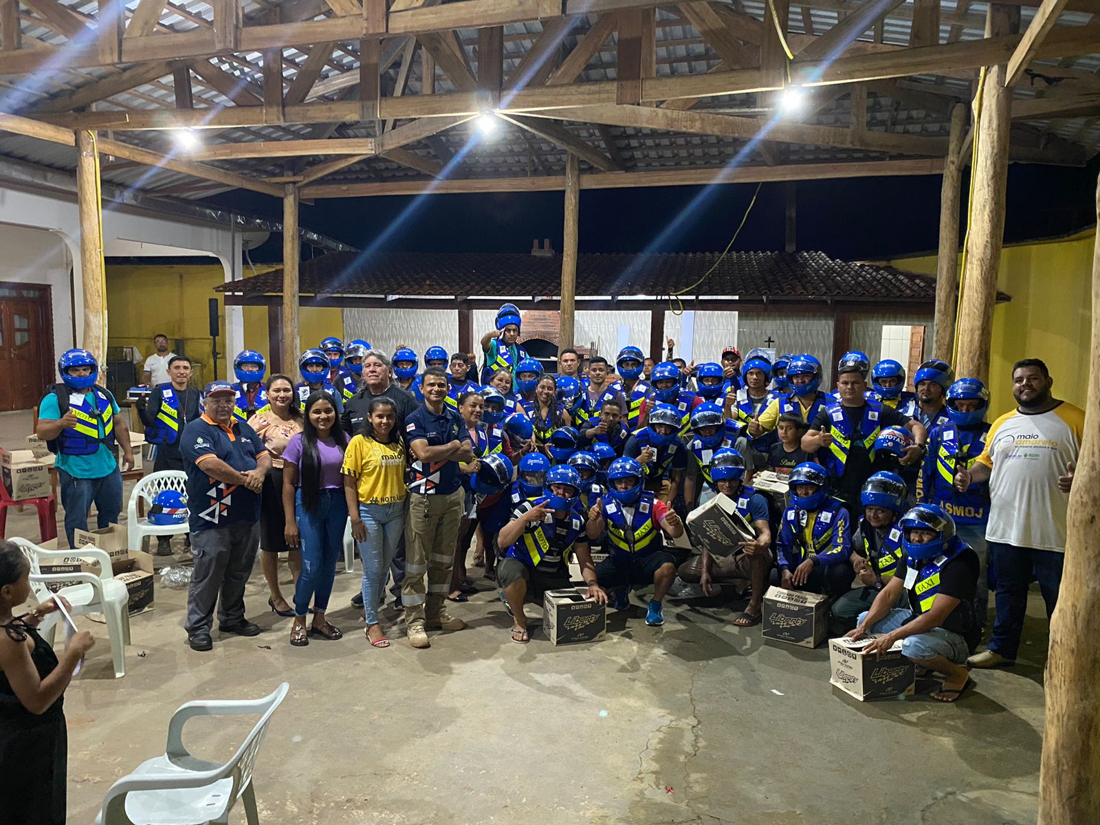 Para finalizar a programação, ainda na sexta-feira, às 20h, foram entregues certificados de conclusão do curso de formação para mototaxistas e motofretistas, além de kits de capacete e colete do projeto “Motociclista Legal”. Ao todo, 208 profissionais foram contemplados.